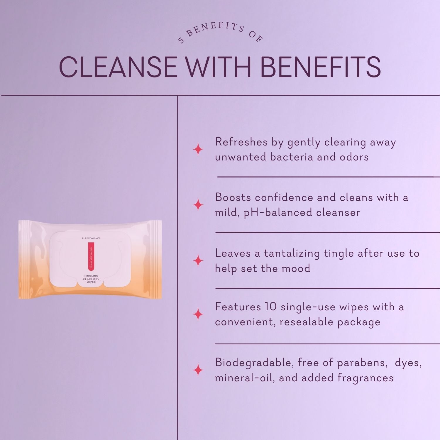 Date night’s best friend—with benefits! Slip these pH-balanced cleansing wipes in your bag so you’re always ready for mind-blowing pleasure, no matter where the day (or night!) may take you. Formulated to keep you feeling fresh, these wipes also have a sexy little secret: they’re infused with ingredients that leave behind a tantalizing tingle on your most intimate areas.